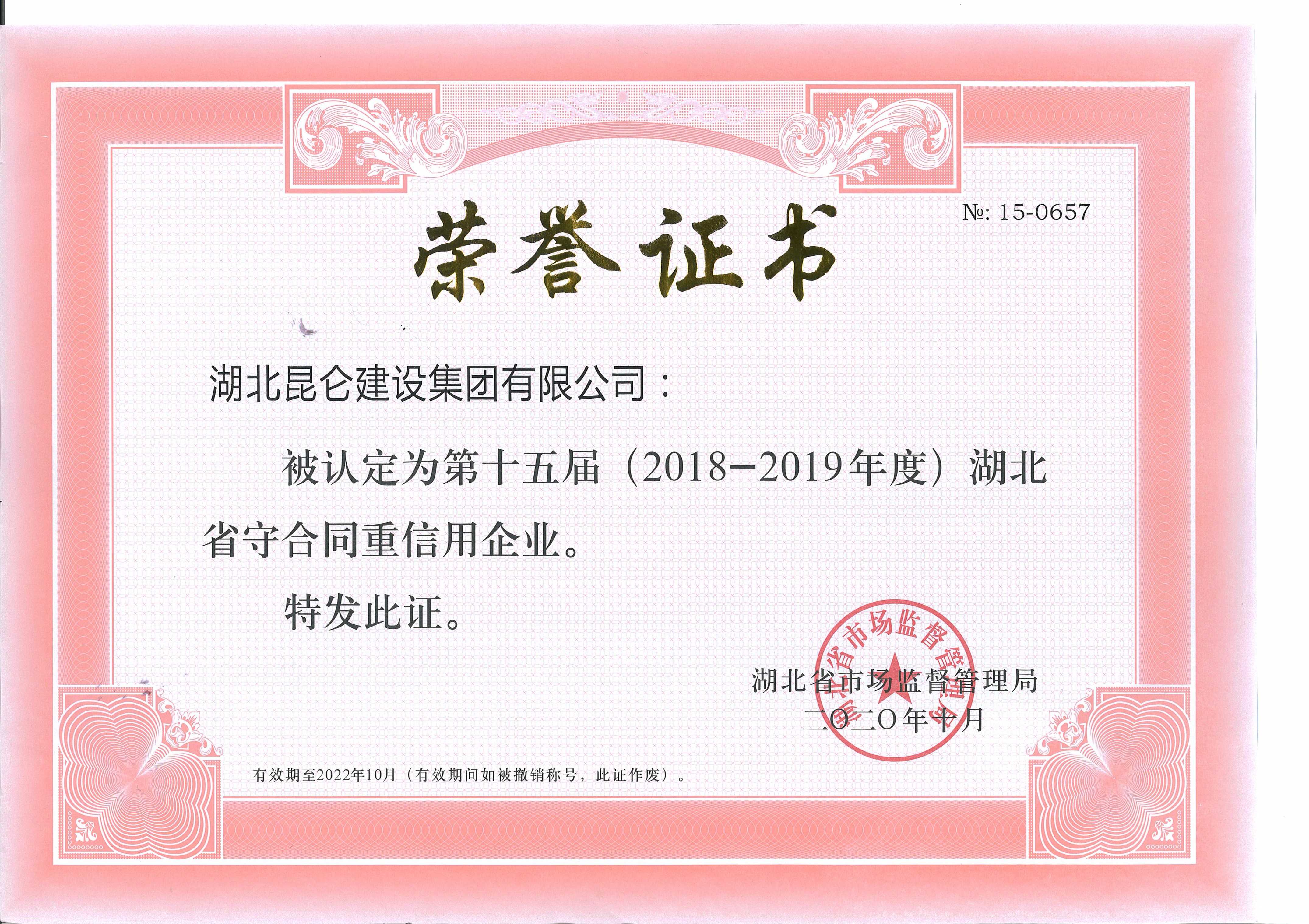 2018~2019年湖北省守合同重信用企業(yè)