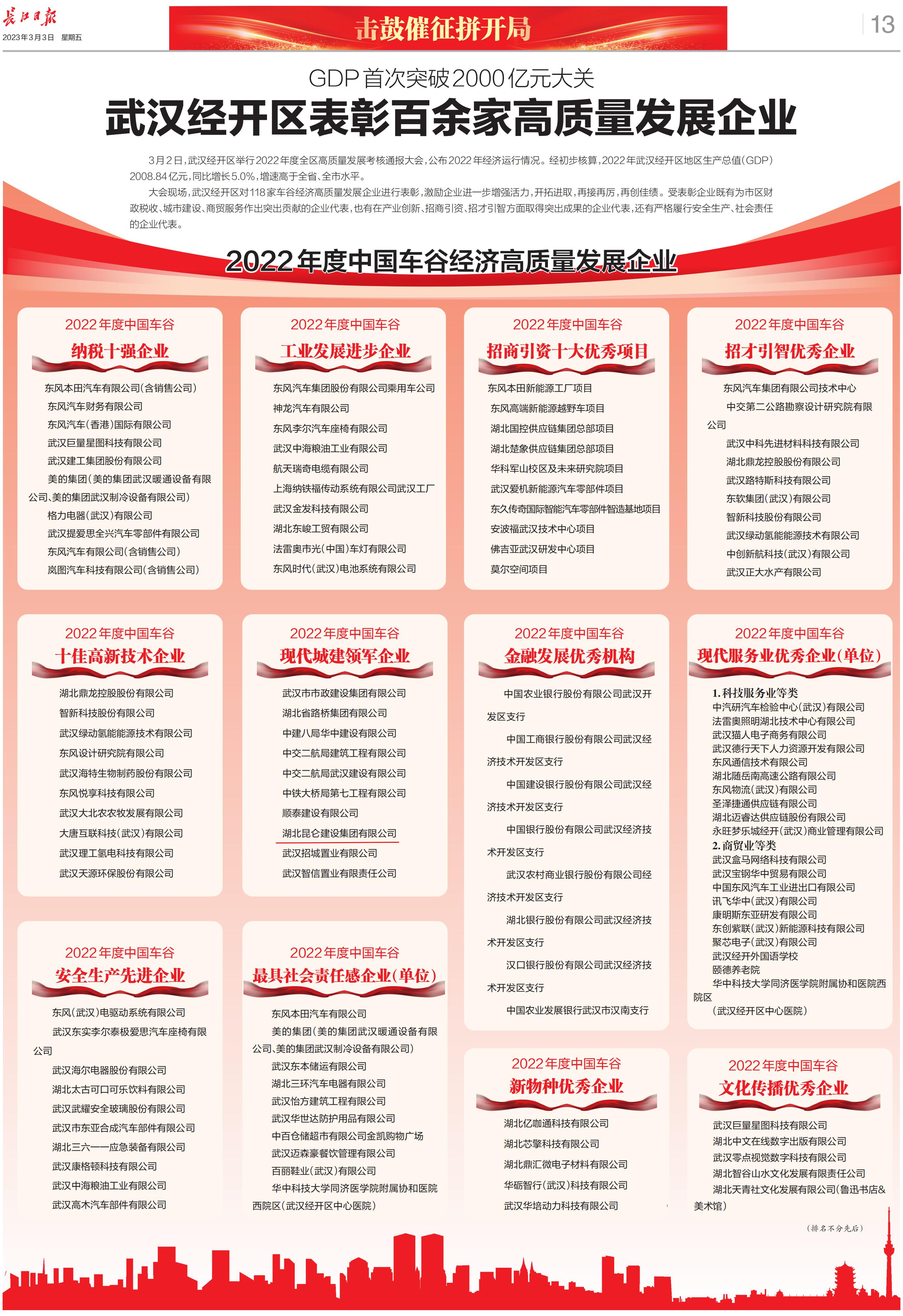 2022年昆侖集團(tuán)榮登武漢經(jīng)開區(qū)高質(zhì)量發(fā)展企業(yè)(...